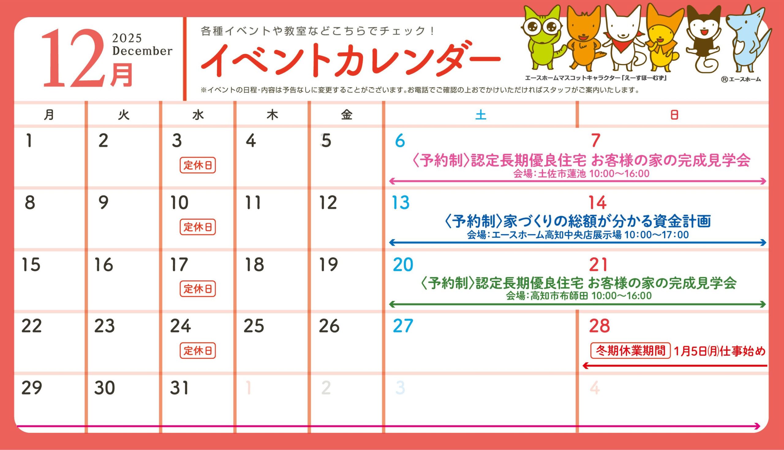 週替わりでお悩み別の勉強会や完成見学会を開催!