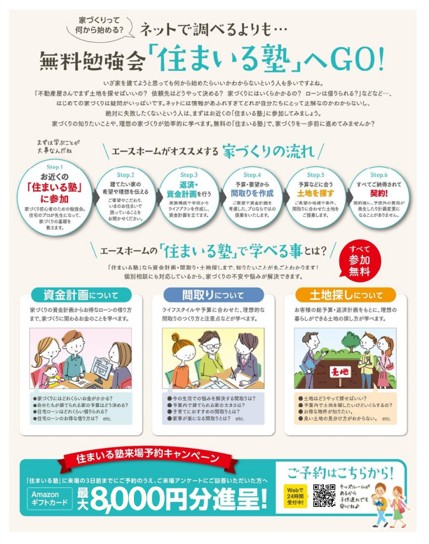 エースホーム下越店では無料勉強会「住まいる塾」を開催いたします。