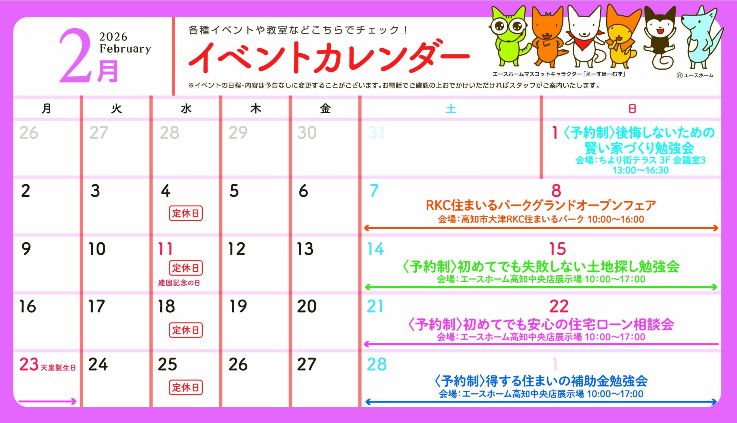 エースホーム高知中央店では、毎週末に週替わりのイベントを開催しています。