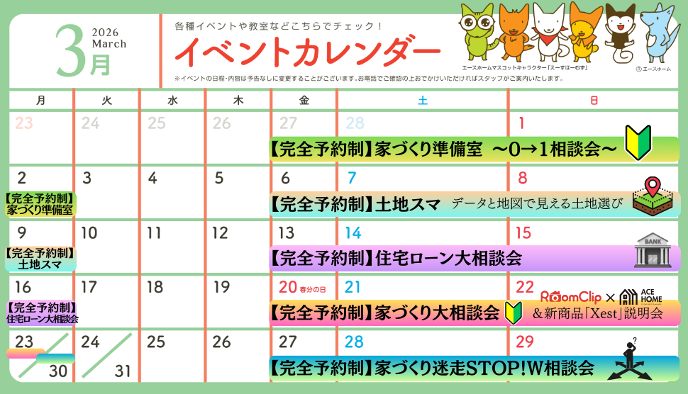 3月のイベント情報をお知らせします。
