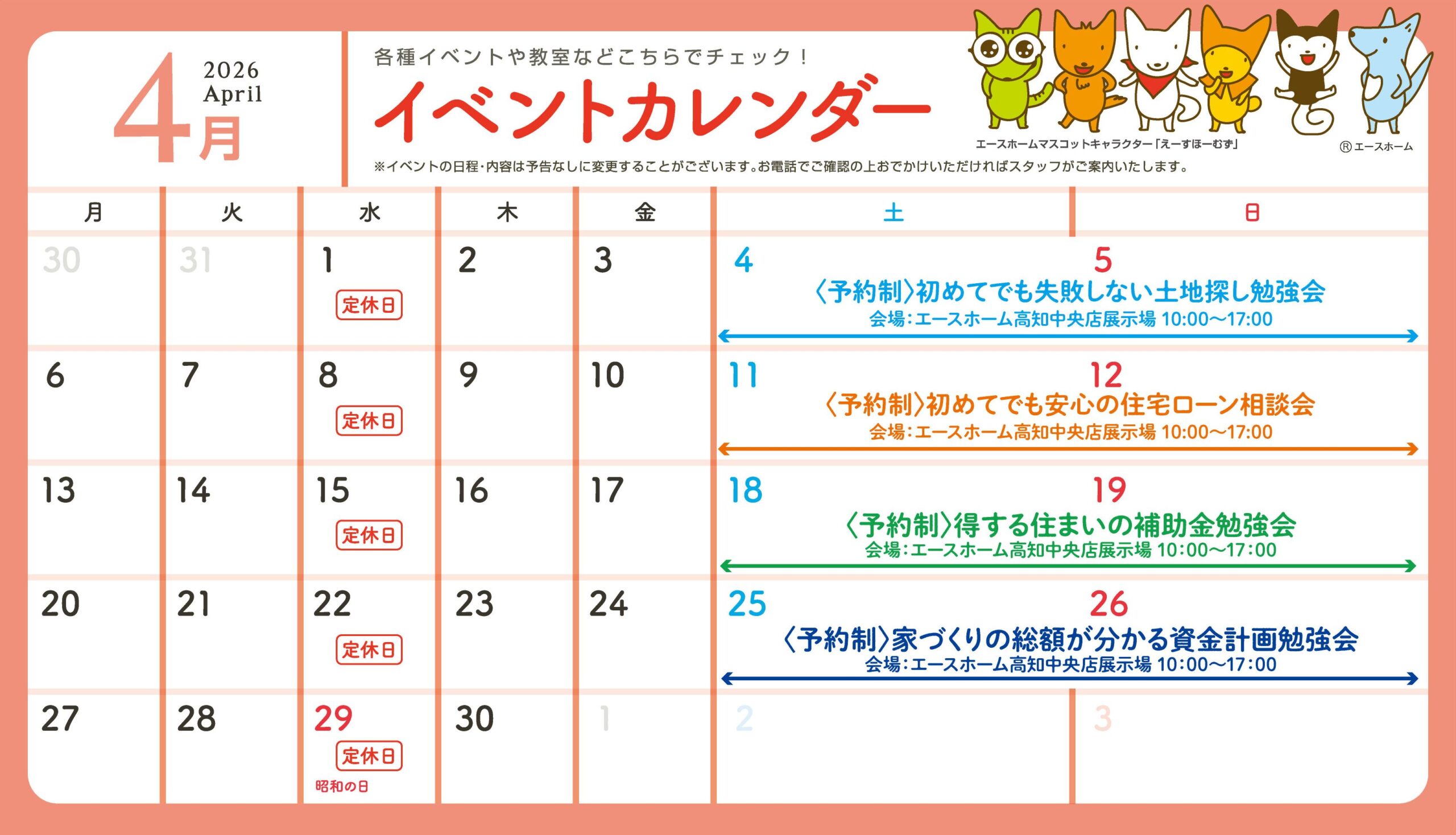 週替わりでお悩み別の勉強会や完成見学会を開催!