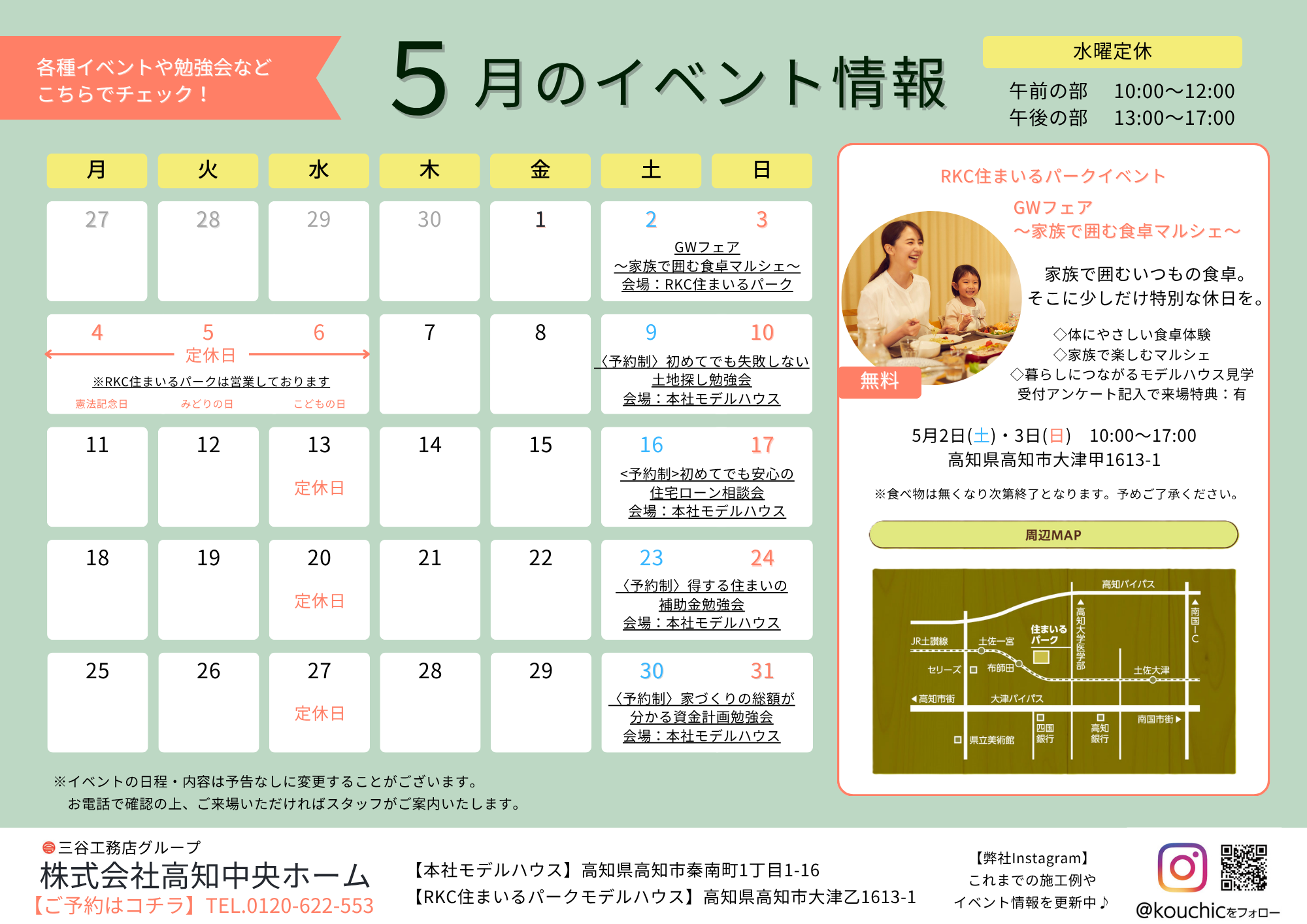高知市大津の【RKC住まいるパーク】ゴールデンウィークフェアが開催されます。