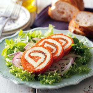 薄くスライスした紅鮭に、チーズを丁寧に巻き上げて蒸されたこちらはしっとりとした食感が魅力で、鮭とチーズの相性が絶妙な美味しさです。